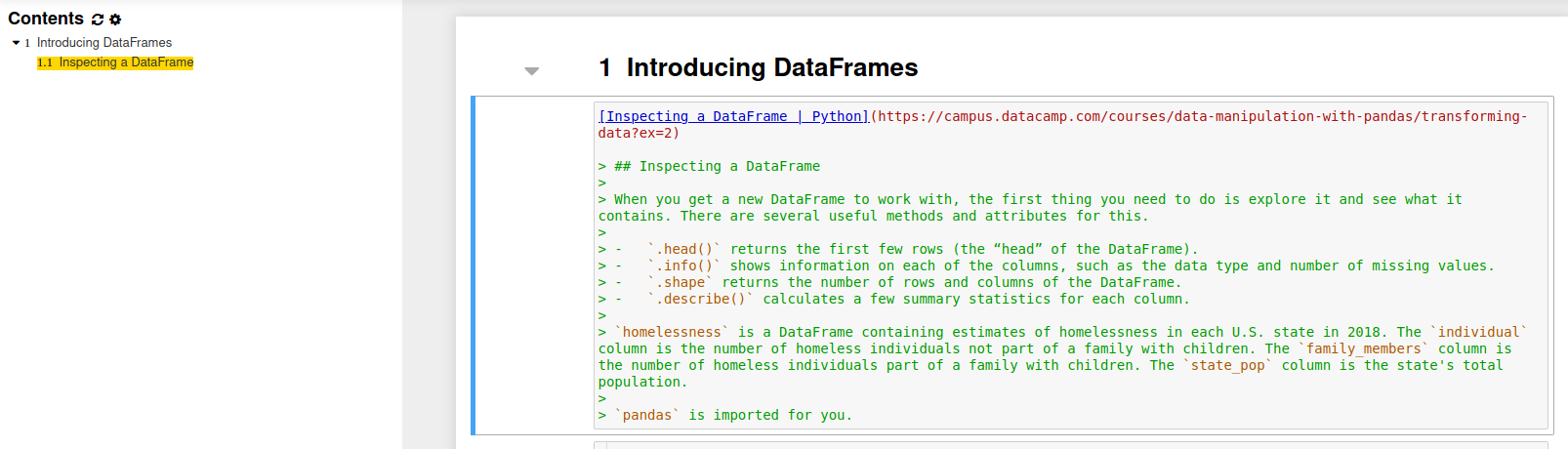 Data Manipulation with pandasfolder underOther datacamp courses - creation of